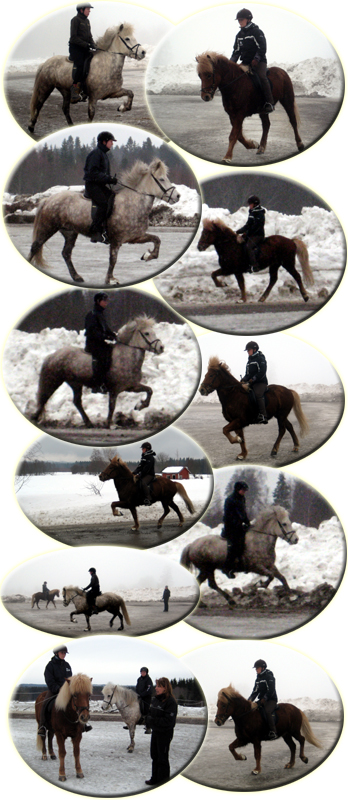 Kurssilla käytiin läpi myös tärkeää hevosen lihashuoltoa ja pohdittiin apujen käyttöä ja niiden ajoittamista. Kaikin puolin onnistunut kurssi. Kurssiviikonloppu huipentui sunnuntaina Team Iceriderin Mäenpään Kartanon väelle pitämään askellajinäytökseen.