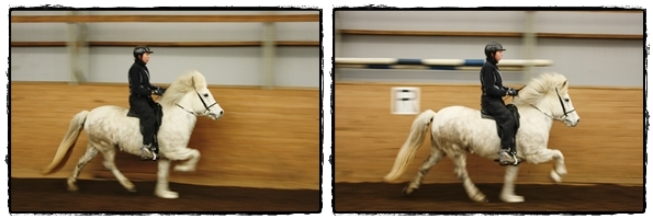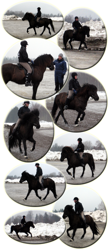 Erityisen iloisia olimme treenihevosemme Litla-Huldan ja Päivi Lapin edistymisestä. Hulda on Hrynjandin jälkeläinen ja omaa isänsä upean laukan ja töltin. Töltti kehittyy huimaa vauhtia, mutta voimaa tarvitaan vielä. Rosakin ehti vielä ratsastaa Svarkurilla ennen, kuin neiti kiisi ulkomaille tanssikilpailuihin.