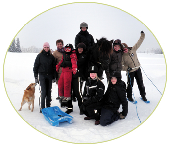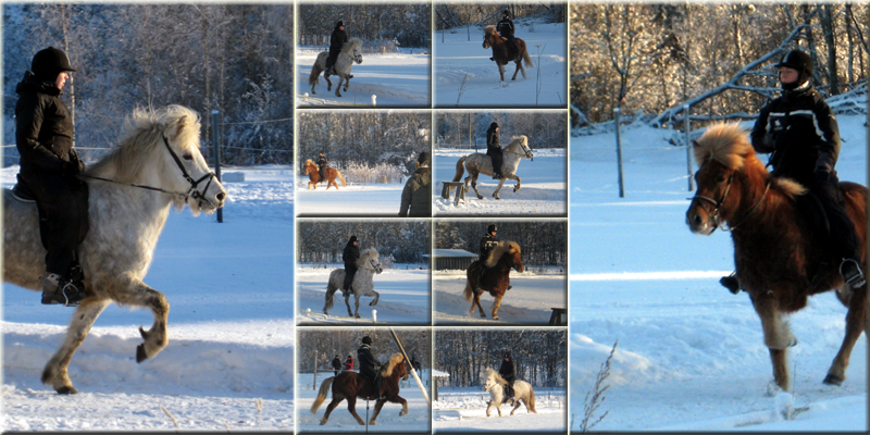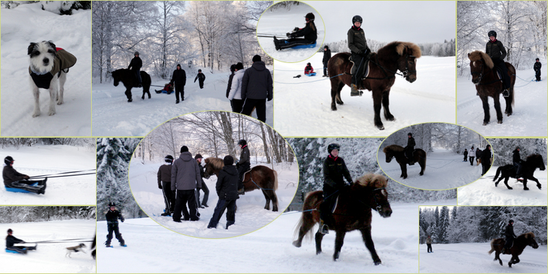 Icerider tiimiläiset viettivät hulvattoman hauskan laskiaissunnuntain. Ensin kaivettiin vintiltä esiin minisukset eli minarit, pulkka ja rattikelkka, ja sitten Iida ajoi Magnilla ratsasten - karjapaimentyyliin - hevoset laitumelta, jotta päästiin täyteen touhuun. Sitten eikun yksi suksille ja pari pulkkaan ja menoks! Meno olikin aikamoista, kun Svarkur ja Grettir toimivat "työhevosina" tässä riehassa.