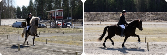 Kisojen jälkeisenä viikonloppuna 14.-15.5 oli Jennin ja Lauran pitämä askellajikurssi. Eliisa osallistui kurssille uudella lupaavalla Skenkur –ruunallaan. Skenkurilla on todella lupaavat askellajit ja tällä hevosella Eliisa tulee pääsemään vielä pitkälle. Jäämme odottamaan jännityksellä ratsukon edistymistä. Eliisan sisko Marleena siirtyy ratsastamaan perheen Sverta –tammaa. Marleena osallistui Svertalla kurssille ja yhteinen sävel löytyikin hyvin.